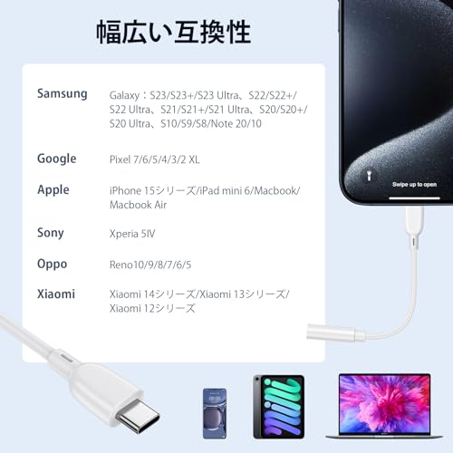 タイプC イヤホンジャック 変換アダプタ USB-C to 3.5 mm イヤホン ヘッドホンアダプター HiFi音質 変換ケーブル Type C to Aux ヘッドホンアダプター マイク / 音声通話可能 / 音量調節 / 音楽 ヘッドフォンジャックアダプタ iPhone 16 / 15 / iPad mini / iPad pro / Pixel / Xperia / Galaxy対応 0.18m
