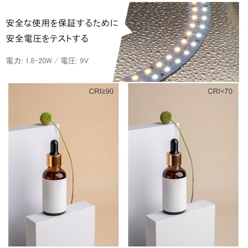 【3色切替&10段階調光】3色温度切替 & 10階段モードの明るさは調光可能な丸型LEDライトは200個のビーズを搭載します。新しくアップグレードされたモノクロ温度白色光(CRI>90)。優れた高演色LEDを採用しており、高品質の反射材で作られて、優れた耐熱性があり、光を拡散して、完璧な照明を与えます、追加のカラーフィルターをインストールしなくて