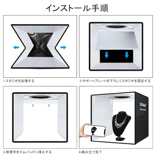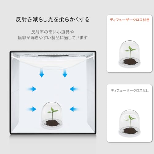 【完璧な内部撮影環境】撮影ボックスの内部は高品質の反射材が付いているので、光を拡散して、優れた耐熱性があり、完璧な照明を与えます。反射内壁により、光を撮影ボックスの各コーナーに均一に分布して、ボックス内全体に満遍なく光が行き渡り。