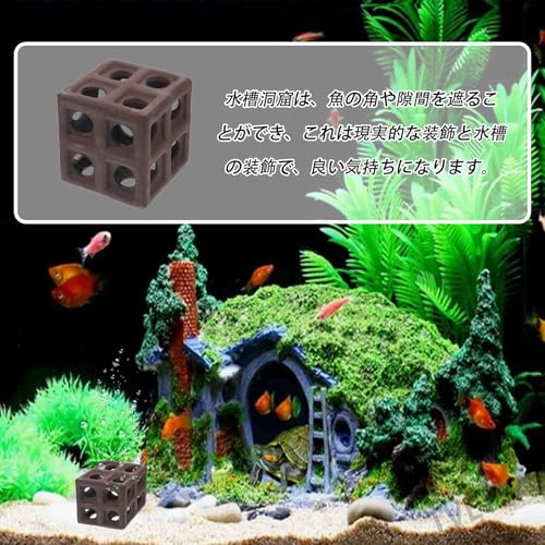 【水槽隠れ家】魚の水槽隠れ家は水生動物に広々とした休憩場所を提供します。他の成魚による攻撃を避けることができます。隠れ家があれば、明るいライトから逃れたり、同じ水槽内の気の強い生き物から逃れたりできるようになります。魚を繁殖させたい方にもおすすめです。