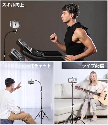 スマホスタンド 三脚 4段階高さ調整 俯瞰撮影 転倒防止 アルミニウム合金 iPhone 三脚 360度回転 グースネック スマホスタンド 三脚 iPhone 15 14 13 / Android スマホ等対応 収納42cm 最大長さ205cm