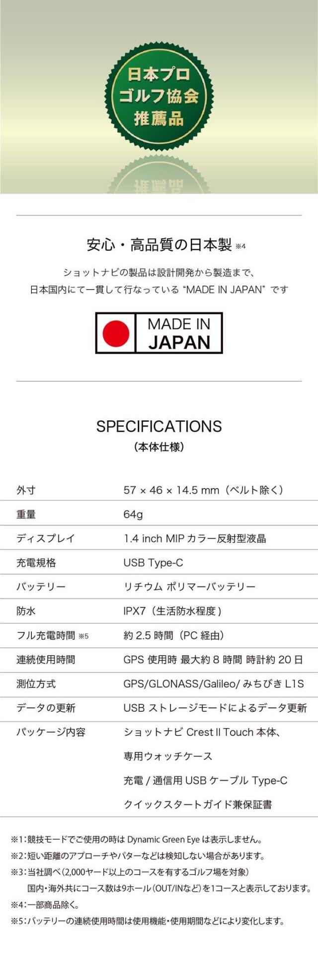 【正規販売店】ショットナビ クレスト 2 タッチ ブラック 腕時計型 GPSゴルフナビ 日本製 Crest 2 Touch オートビューチェンジ タッチスクリーン Shot Navi
