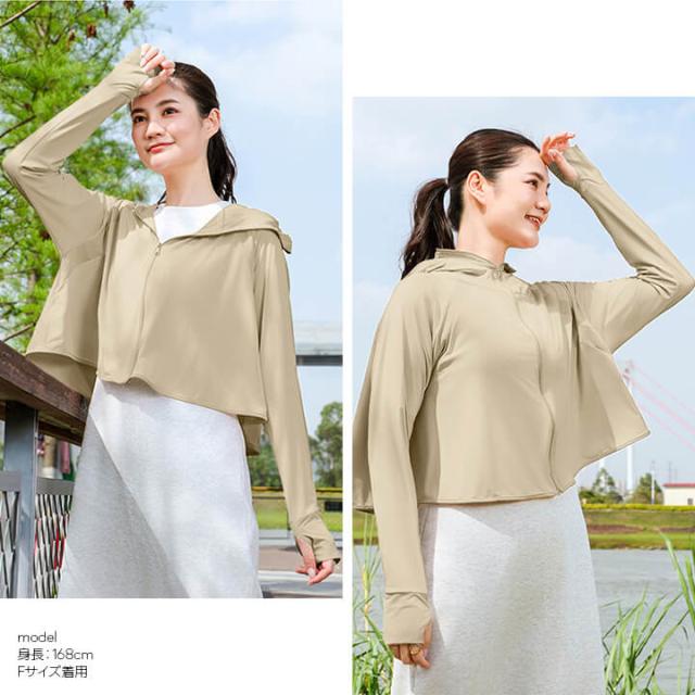 ラッシュガード レディース 紫外線対策 UPF50+ 夏 UVカット 日焼け対策 ラッシュパーカー ショート丈 薄手 涼しい 速乾性 オシャレ パーカー 指穴 フィンガーホール フード 冷感 ポケット 長袖 普段着 水着 ビーチ 海 サーフィン アウトドア フ