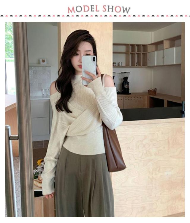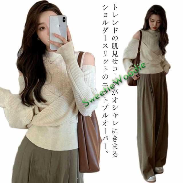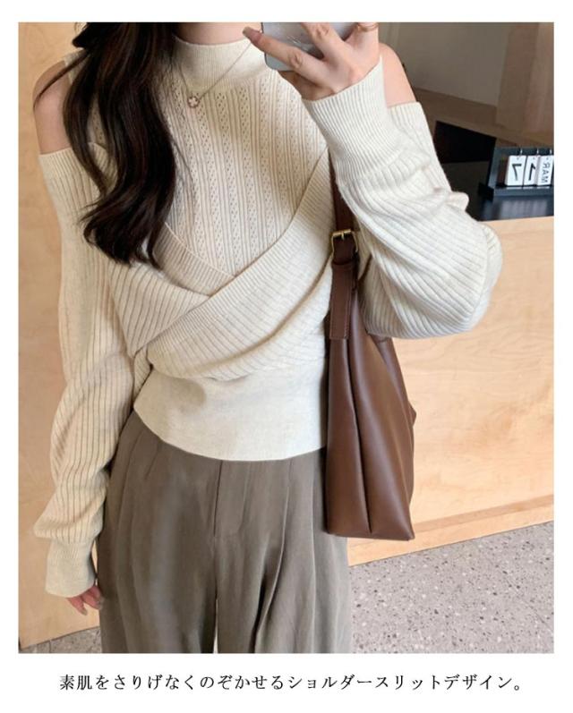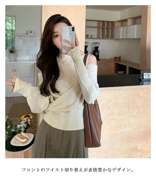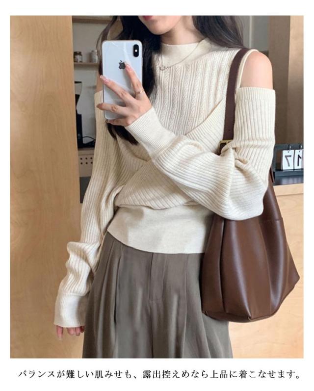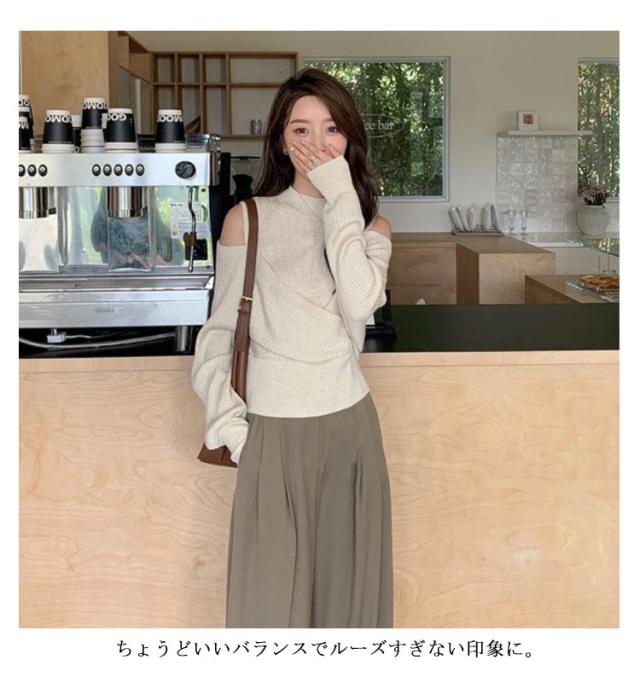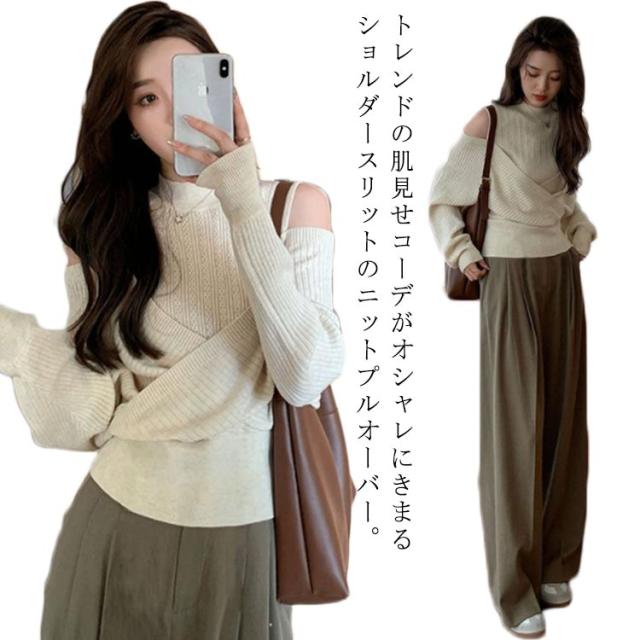 ニット セーター レディース ニットセーター 長袖 トップス 秋 肩あきニット 薄手 リブ リブニット 肩開き 肩見せ タートルネック ストレッチ シンプル ゆったり 無地 大人 かわいい きれいめ カジュアル 韓国 通勤 通学
