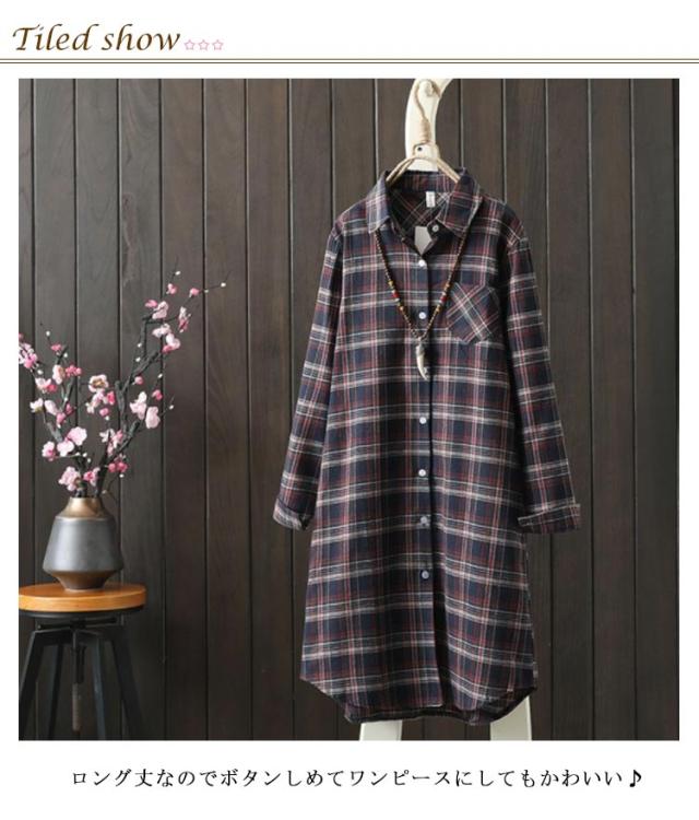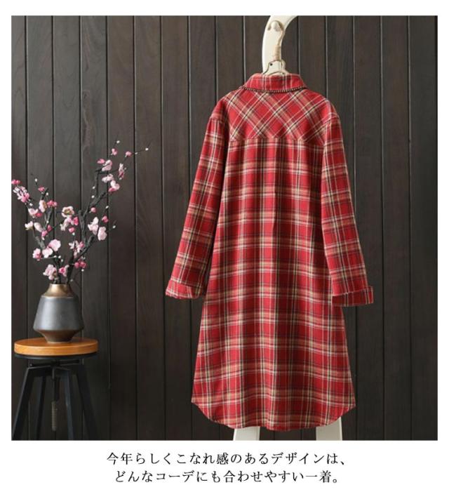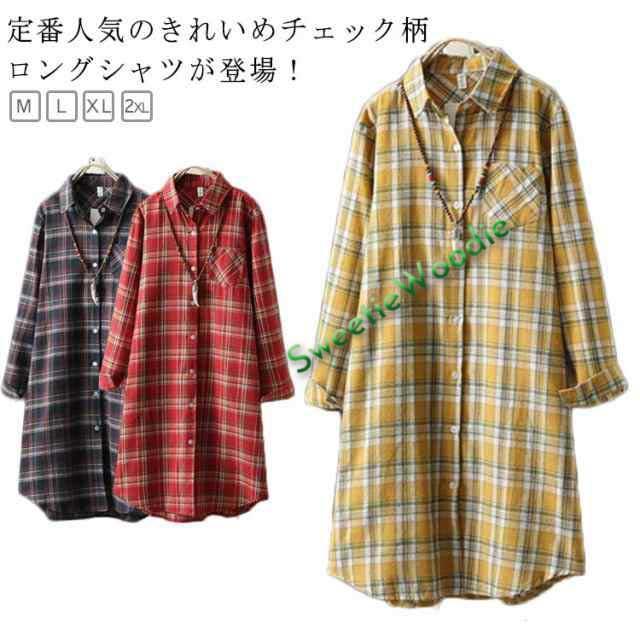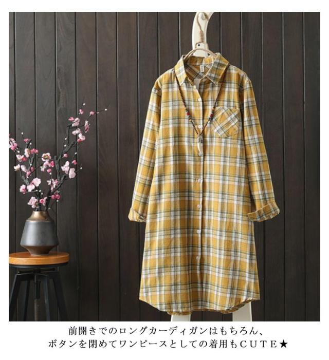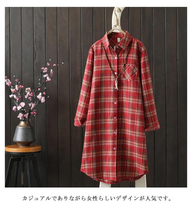ロングシャツ 羽織り レディース アウター チェック柄 シャツ 長袖 ロング丈 重ね着 春秋 冬 ロングカーディガン シャツワンピース 体型カバー おしゃれ ゆったり 大きいサイズ シンプル カジュアル ガウンシャツ 通勤 通学 定番 シャツワンピ ギフト 送料無料