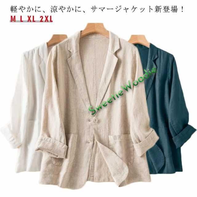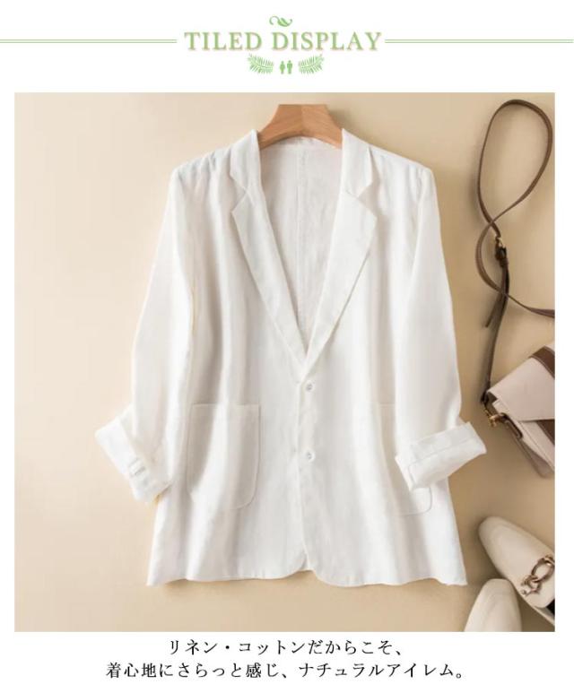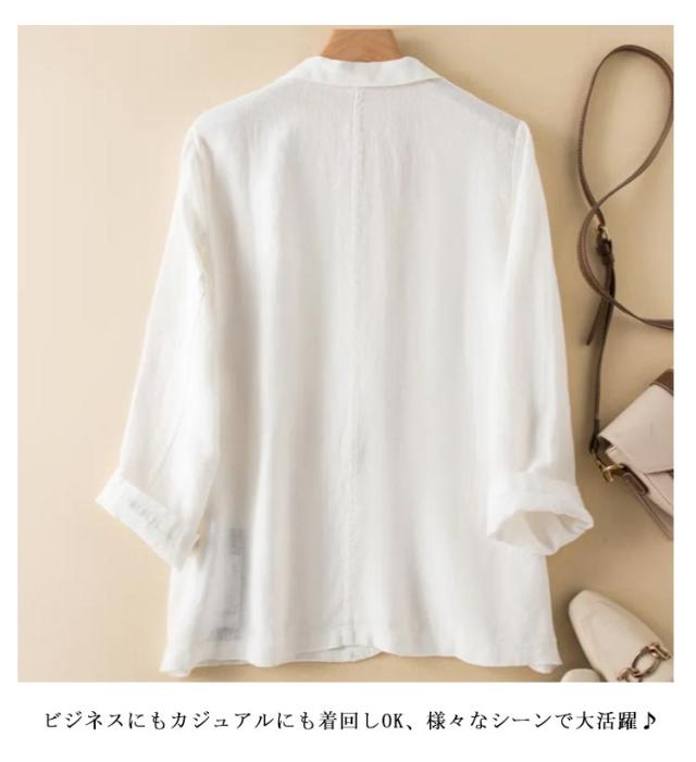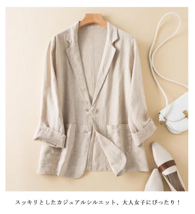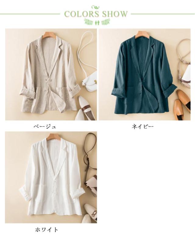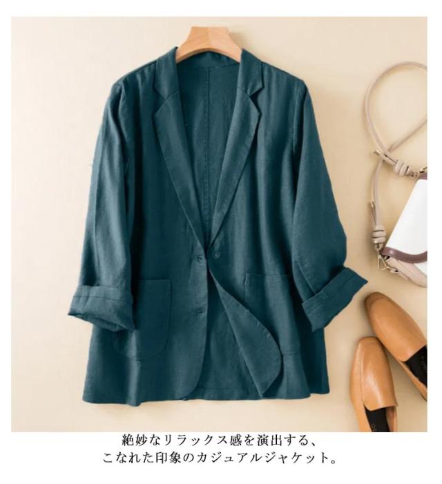 サマージャケット レディース テーラードジャケット 綿麻 薄手 長袖 七分袖 ジャケット リネンジャケット 夏 サマー 冷房対策 アウター スリムスーツ トップス 洗える ナチュラル カジュアル 春夏 無地 フォーマル 麻素材 涼しい ギフト 送料無料