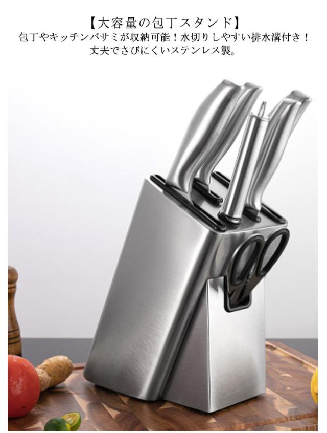 包丁スタンド 包丁立て ステンレス ナイフスタンド ナイフラック 出刃包丁 大容量 中華包丁 三徳包丁 ホルダー キッチン用品 キッチングッズ 収納 ハサミ収納 抗菌 水切り 衛生的 シルバー お掃除 通気性 台所用品