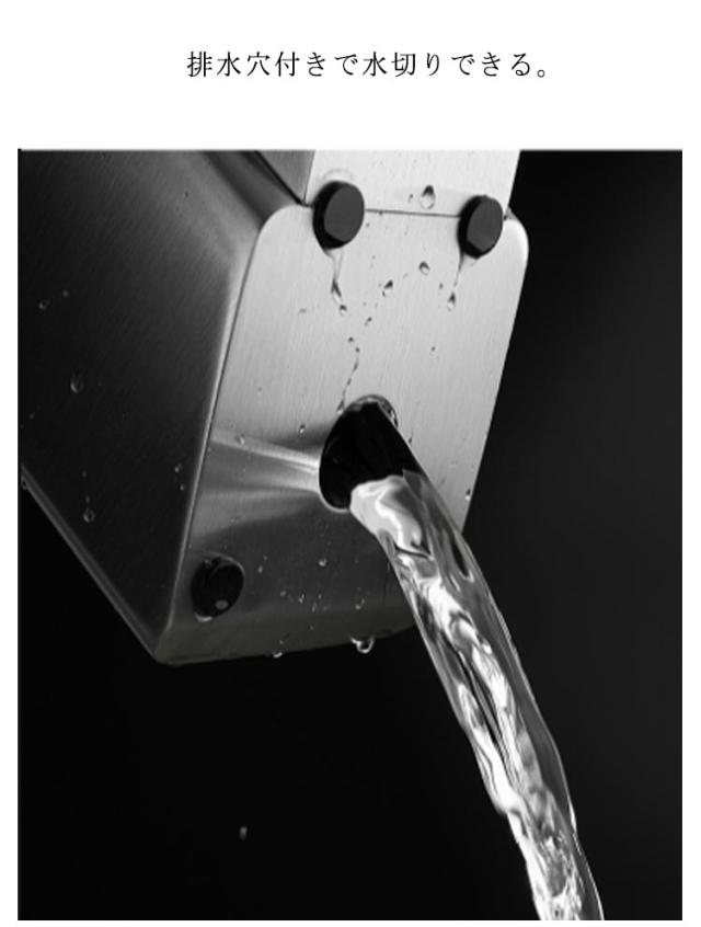 | 【大容量の包丁スタンド】包丁やキッチンバサミが収納可能! 水切りしやすい排水溝付き! 丈夫でさびにくいステンレス製。 【こんなお悩みを解決!】木製の包丁スタンドはカビが発生しやすい。 作業スペースが小さく包丁の置き場所がない。 耐久性が低い包丁スタンドで不安! 【ステンレス製包丁スタンドの特徴】水洗いできるから衛生的。 排水穴付きで水切りできる。 滑り止め加工付きで倒れにくい。 汚れがつきにくい。 | |