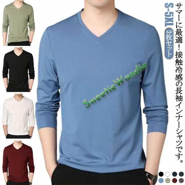 吸水速乾 インナーシャツ 大きいサイズ 冷感インナー 長袖 トップス 冷感インナー 涼しい メンズ 長袖 3枚セット 長袖tシャツ Tシャツ 薄手 接触冷感 アイスシルク 丸首 Vネック ストレッチ 作業服 作業着 トレーニングウェア ゴルフ 野球 tシャツ バイク 釣り キャンプ