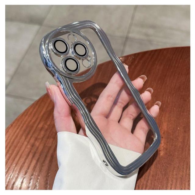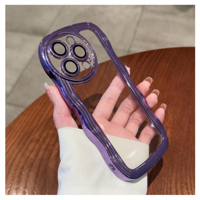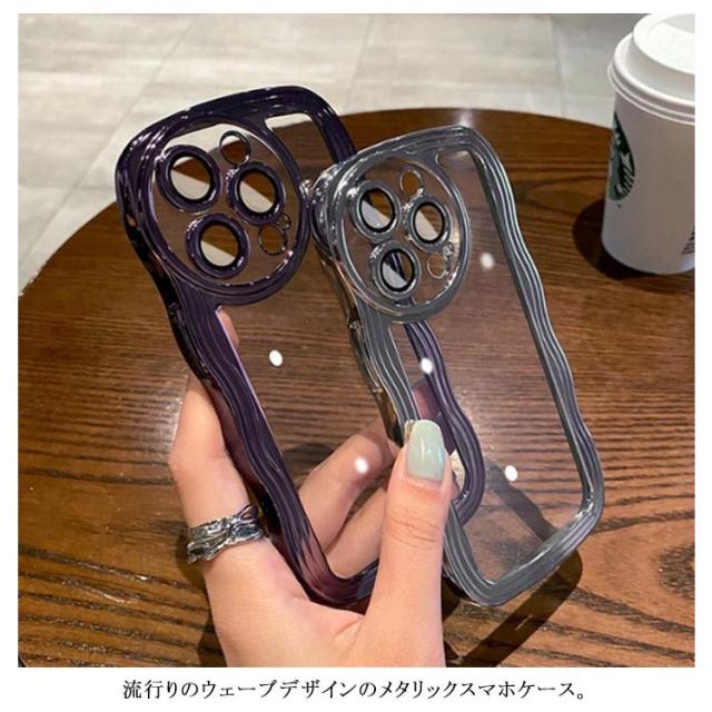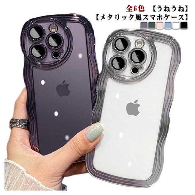 全6色 多機種対応 iPhoneケース うねうね メタリック風 指紋防止 耐衝撃 保護フィルム スマホケース クリア ケース めっき iPhone14 iPhone13 iPhone12 iPhone11 Pro Plus Promax iPhoneXR XS レディース 韓国 おしゃれ 可愛い 送料無料