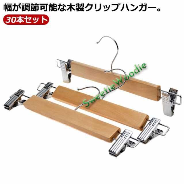 木製 ハンガー クリップハンガー 30本セット ズボンハンガー パンツハンガー スカートハンガー スラックスハンガー ナチュラル おしゃれ クローゼット すべらない 跡がつかない 乾湿両用 衣類 物干し 洗濯 ハンガー スリム クリップ ハンガー