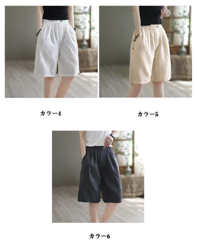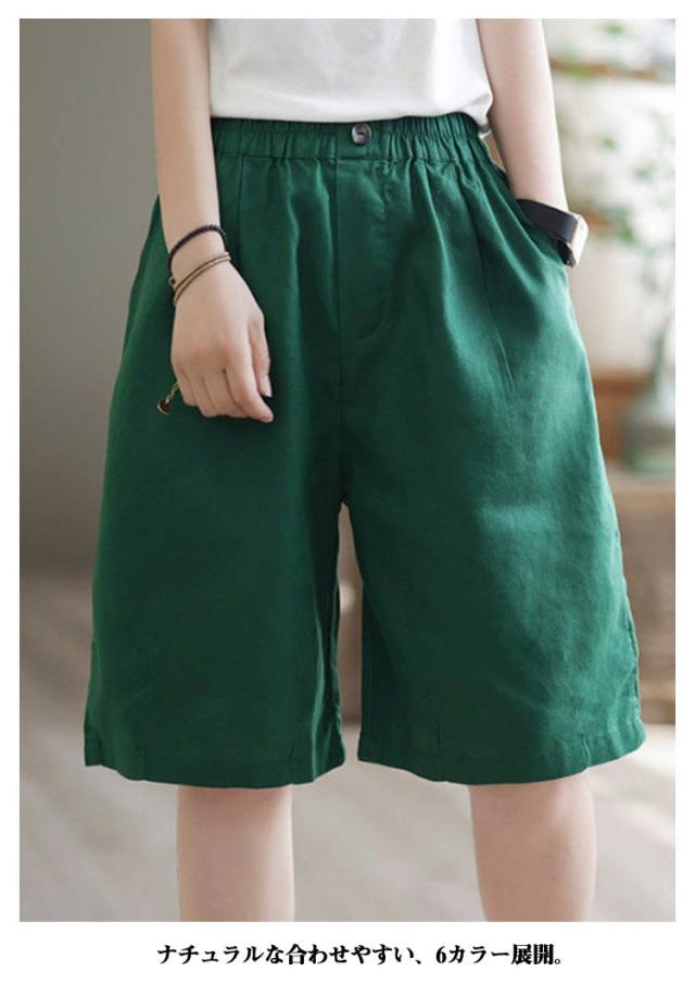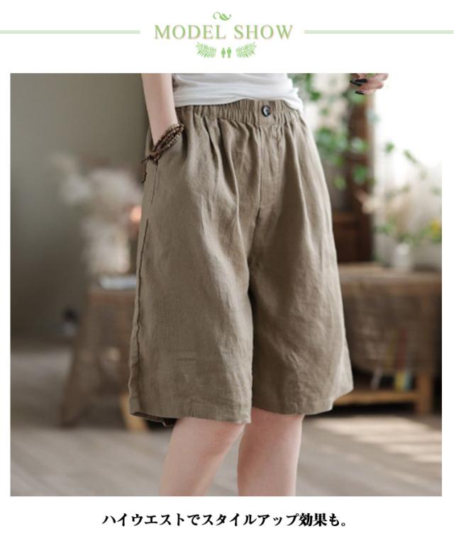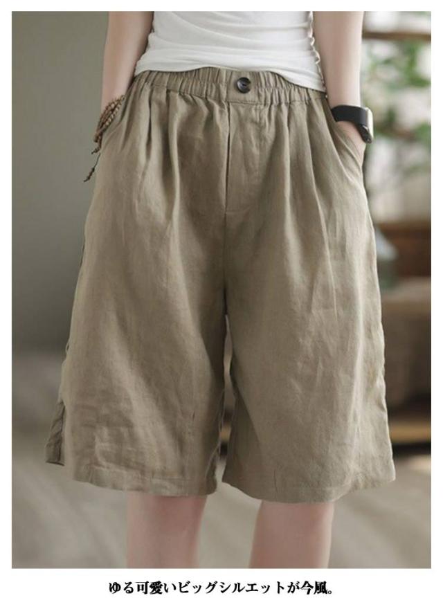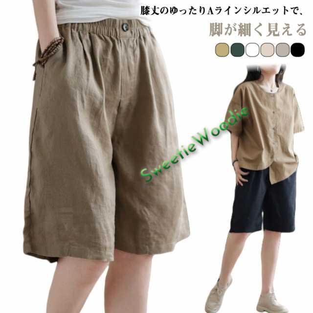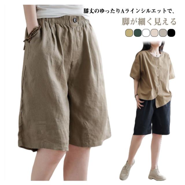 ショートパンツ ハーフパンツ リネンパンツ カジュアルパンツ ショートパンツ 綿 夏服 ワイドパンツ ガウチョパンツ レディース 麻 5分丈 ズボン ボトムス ハイウエスト ショート丈 通勤 通学 女性用 デザイン感 カジュアル 無地
