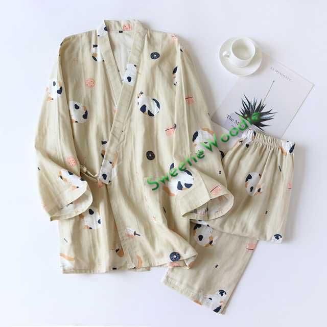 ルームウェア パジャマ メンズ レディース 和式 ナイトウェア 上下セット 甚平 綿 七分袖 ロングパンツ 春夏 薄手 風呂 温泉 部屋着 ホテル 旅館 可愛い 猫 お寝巻き カップルお揃い 普段着 浴衣