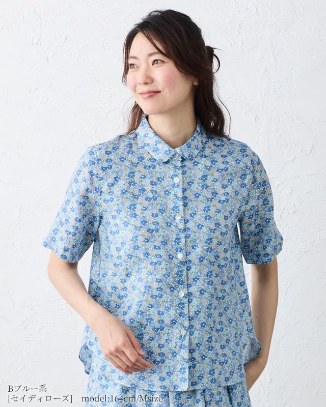 送料無料 春 夏 秋 冬 オールシーズン レディース トップス シャツ シャツブラウス ブラウス 羽織 重ね着 レイヤード レイヤード インナー シャツ衿 シャツカラー 半袖 セットアップ ゆったり 麻 麻100% フランダースリネン リネン リネン100% リバティ生地 リバティプリント LIBERTY リバティ リバティー 小花柄 花柄 草花 フラワー ボタニカル 植物 シンプル 通勤 通学 メリークレイン セイディローズ セルリア デート オフィス ママ 母 ゆったり ラクチン 体型カバー M L 春 夏 新着 新作 20代 30代 40代 50代