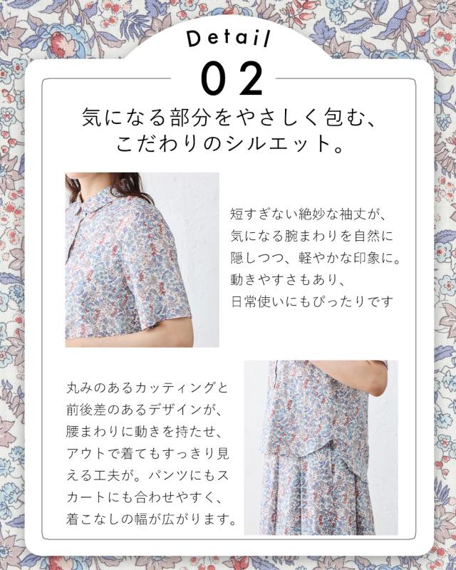 | 商品詳細/その他 | 繊細なリバティプリントが映える、上品な半袖ブラウス。 |