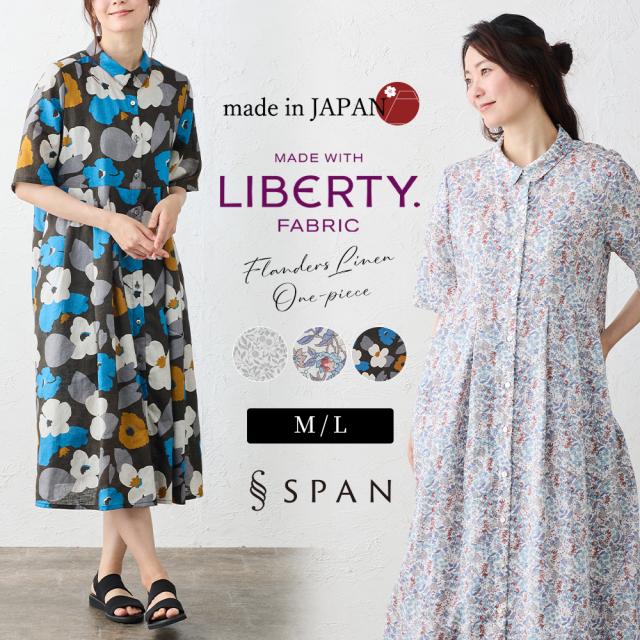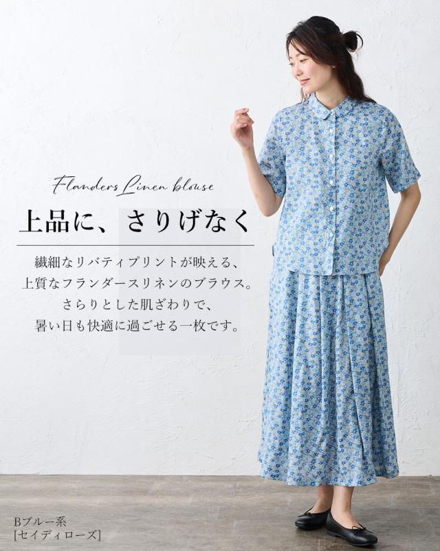 【日本製】リバティ LIBERTY 麻100% フランダースリネン リネン 麻 ブラウス 羽織 半袖 レディース トップス 女性 春 夏 シャツ衿 カジュアル フェミニン