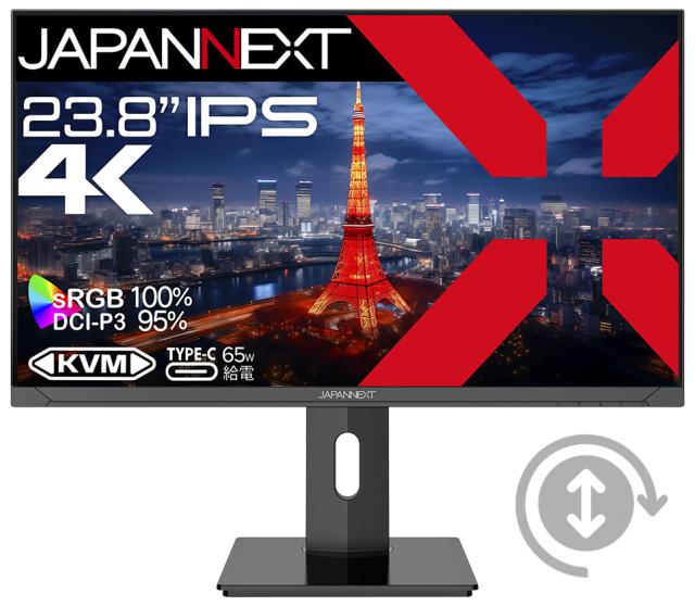JAPANNEXT|ジャパンネクスト JN-IPS2380UHDR-C65W-HSP 液晶ディスプレイ(23.8型/IPS/4K UHD 3840×2160/60Hz/8ms/HDR10/HDMI2.0/DP1.4/USB Type-C/VESA/PIP・PBP対応)(ブラック)昇降式多機能スタンド[JNIPS2380UHDRC65WHSP] 返品種別A