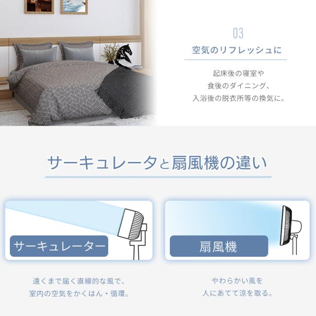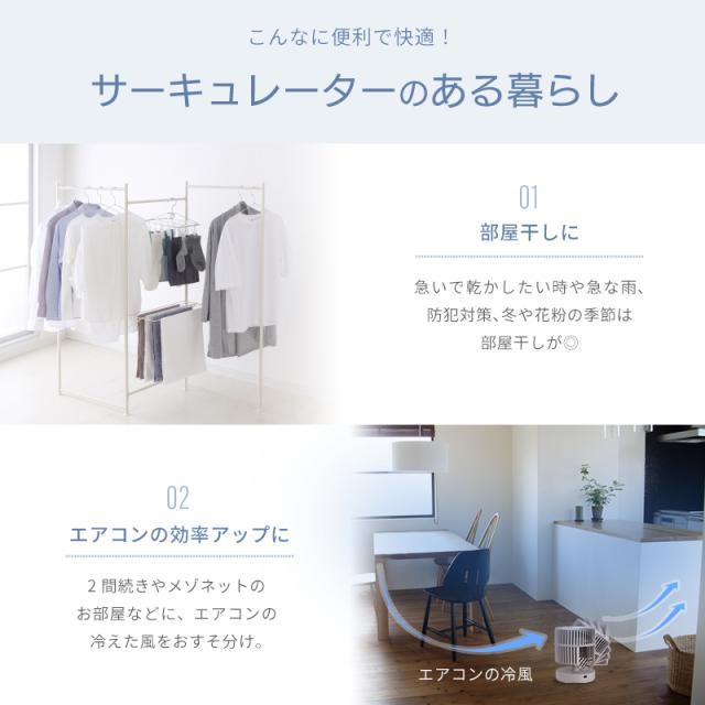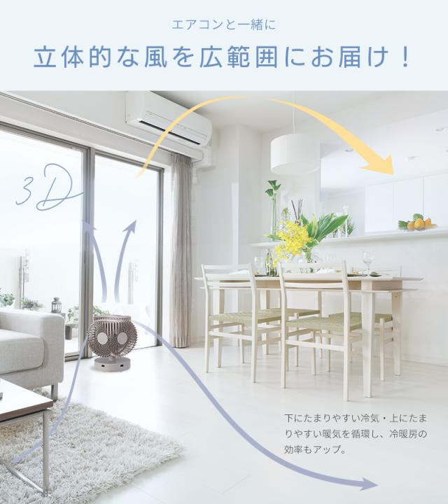 エアコンなどの冷暖房と一緒に使うと、下にたまりやすい冷気・上にたまりやすい暖気を循環し、冷暖房の効率もアップ。