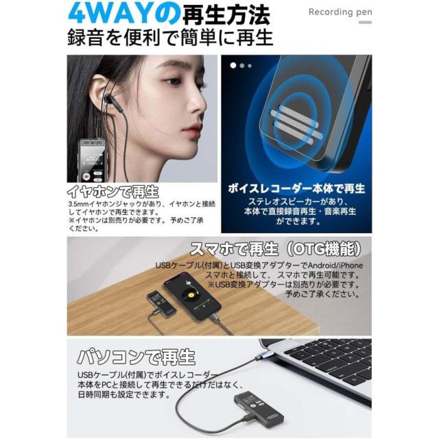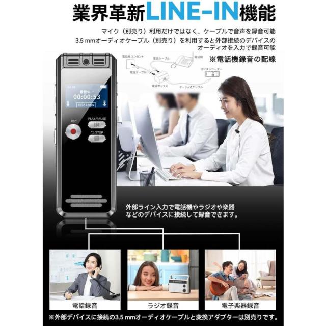 本ボイスレコーダーは革新のライン入力端子を増加して、マイクや電話機やCD プレーヤーなどの外部デバイスから音声を取り込むことができます。