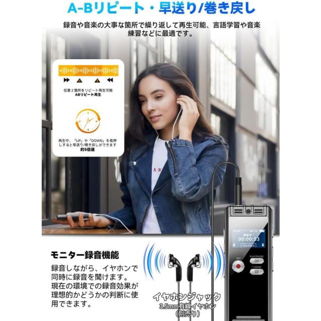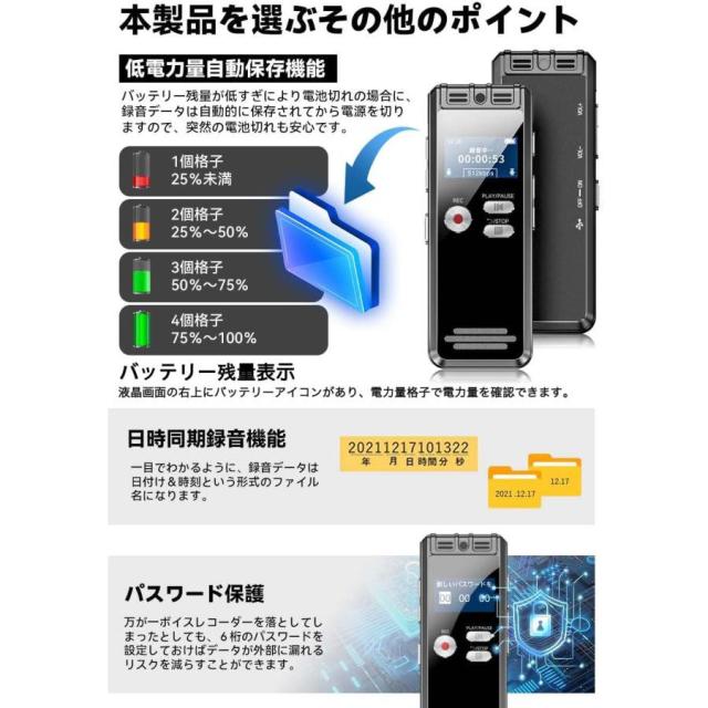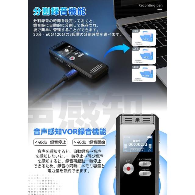 ボイスレコーダー 長時間連続録音 ペン型 高性能 ICレコーダー 録音機 128GB 大容量 1536Kbps 長時間連続使用 高感度マイク リピート機能 パスワード保護 スピーカー内蔵 mp3プレーヤー 会議録音 セクハラ対策 浮気調査 父の日 ギフト
