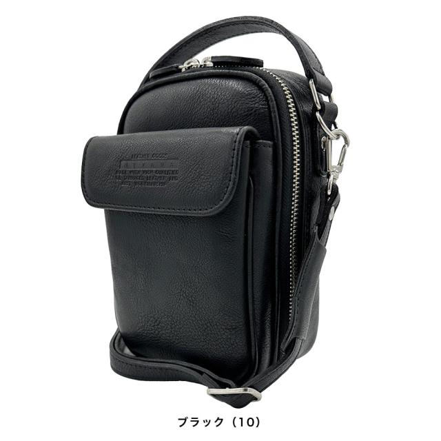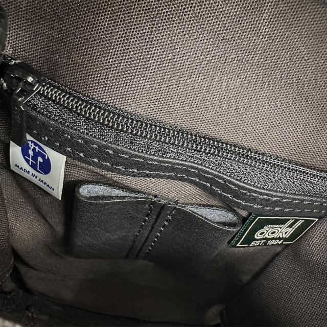 フロントポケット×1、バックポケット×1、ファスナーポケット付き中仕切り×1、ショルダーストラップ最長123cm、内ポケット×1、ファスナーポケット×1、ペンホルダー×2