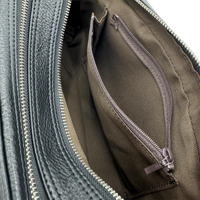 2層コンパートメント×1、フロントポケット×1、内ポケット×1、ファスナーポケット×1、カードホルダー×1、ペンホルダー×2