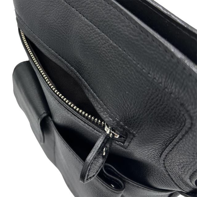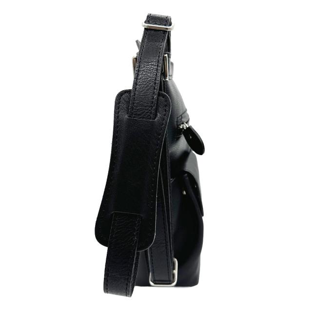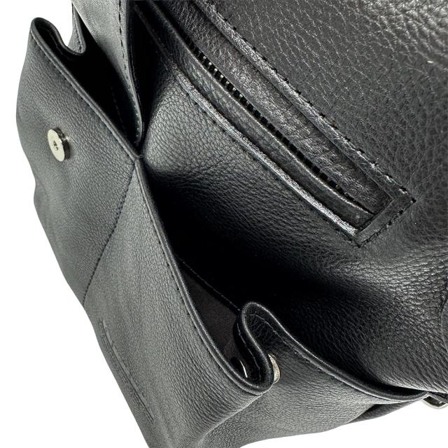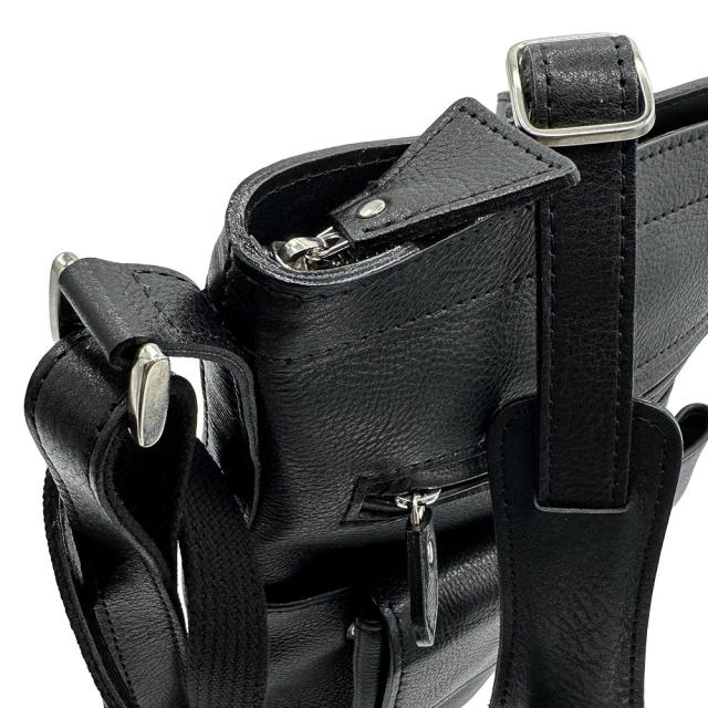 フロントポケット×1、携帯電話ホルダー×1、ファスナー式バックポケット×1、ショルダーストラップ 82cm〜155cm、内ポケット×1、ファスナーポケット×1