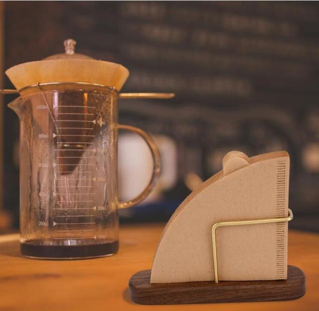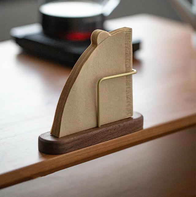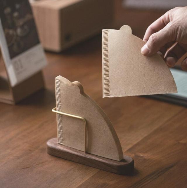 送料無料 新作 超人気 ペーパーコーヒーフィルター 収納入り スタンド ホルダー コーヒーフィルターケース ウォールナットブラス木製