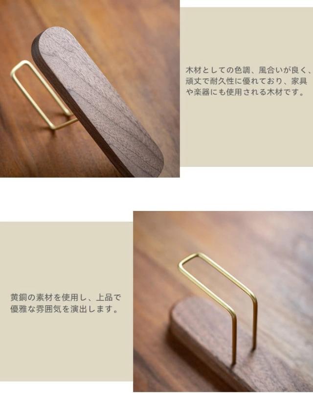 ■木の台座に真鍮製ブラケットを使用したホルダーは高級感があり様々なシチュエーションでご使用いただけます。