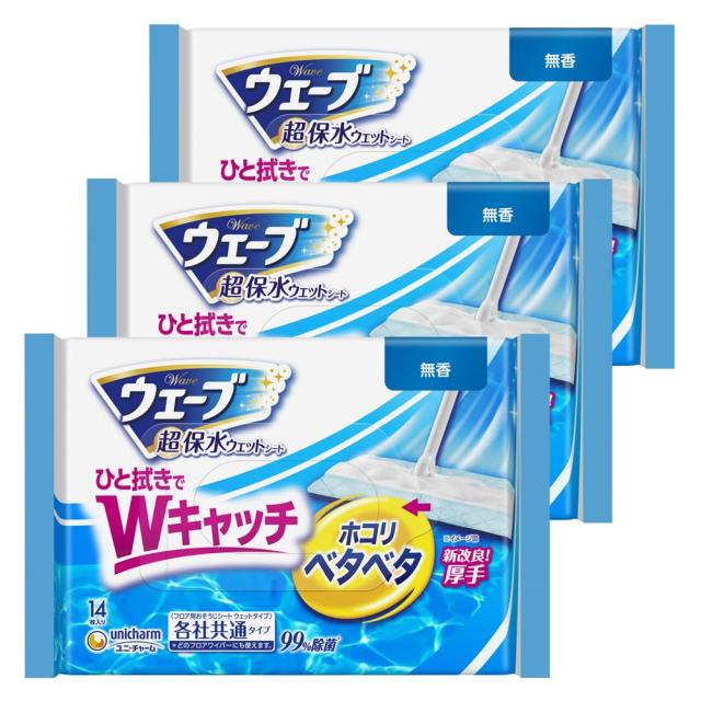 ◆商品名:ウェーブ 【まとめ買い】 フロア用掃除用品 ウェットシート 超保水 無香 14枚×3個(掃除用品) ユニチャーム