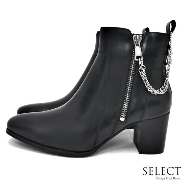 取り外し可能なシルバーの2連チェーンがアクセントになっているヒールブーツ。