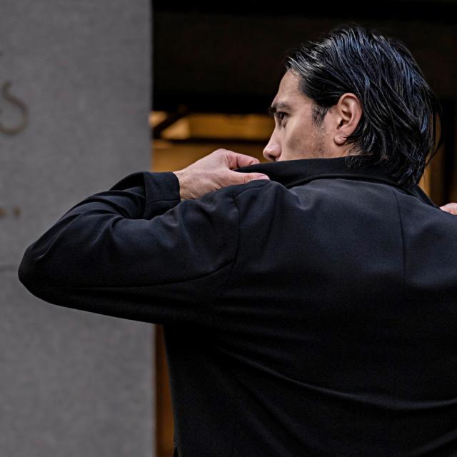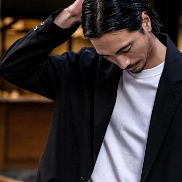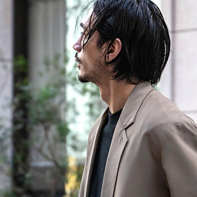 クリーンに見えるよう胸ポケットを無くし、ラペルを細長く見えるよう設計したリラックスジャケットです。