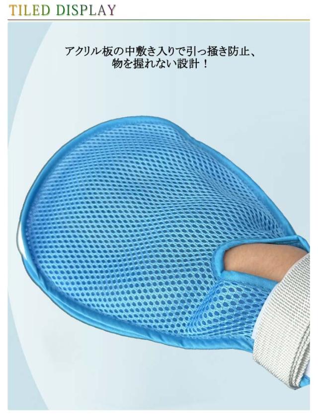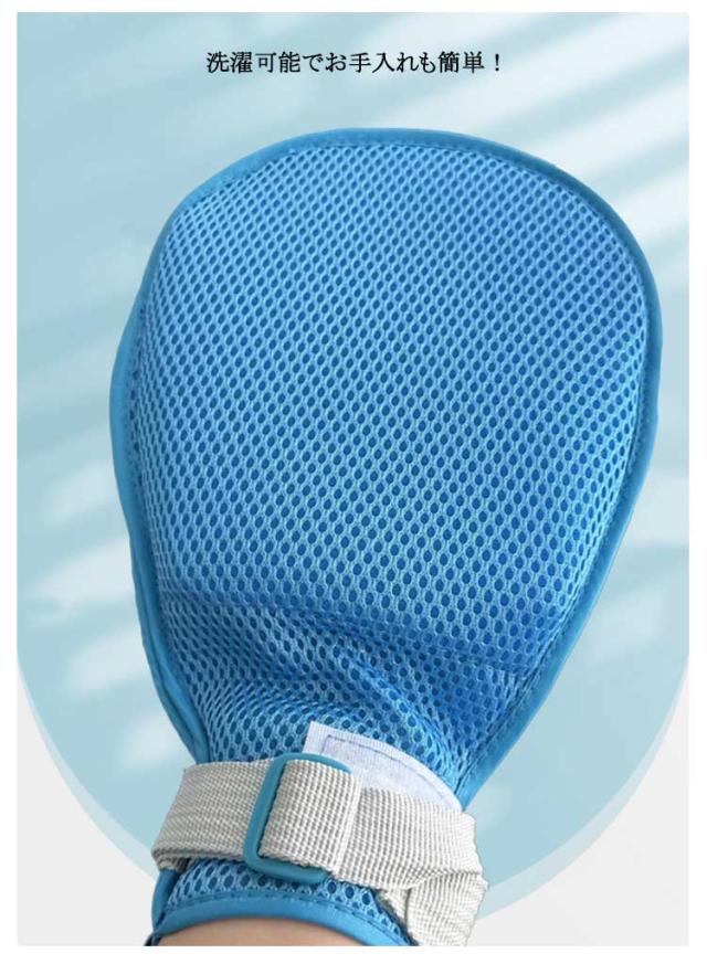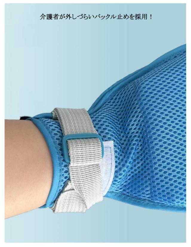 | 介護ミトン ?きむしり防止手袋 自傷防止手袋 左右2枚セット 蒸れにくいメッシュ素材で通気性抜群! アクリル板の中敷き入りで引っ掻き防止、物を握れない設計! ミトン内部にはズレ防止リング付きでミトンの回転を防止! 介護者が外しづらいバックル止めを採用! 洗濯可能でお手入れも簡単! 装着しやすく手のケアも可能なファスナーあり。 | |
