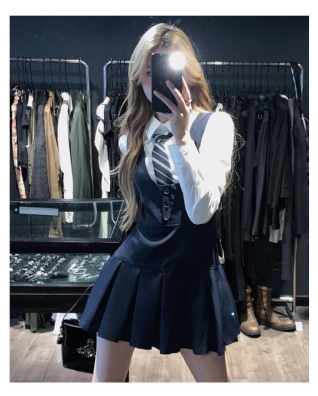 学生服 プリーツスカート 3点セット ネクタイ 制服 ショート丈 女子高生 ジャンパースカート スクールスカート スクールシャツ ミニ丈 制服 ワンピース スクールスカート JK 長袖 無地 シャツ スクール 女子 中学生 高校生 制服 フォーマル 卒業式 入学式 コスプレ