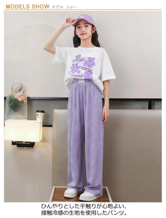 ワイドパンツ イージーパンツ ガウチョパンツ プリーツパンツ 女の子 キッズ ガールズ 虫除け 薄手 接触冷感 ロングズボン 薄手 ひんやり 夏服 子供服 チノパンツ ボトムス ゆったり 冷感 蚊刺され防止 ストレッチ ジュニア ダンスパンツ