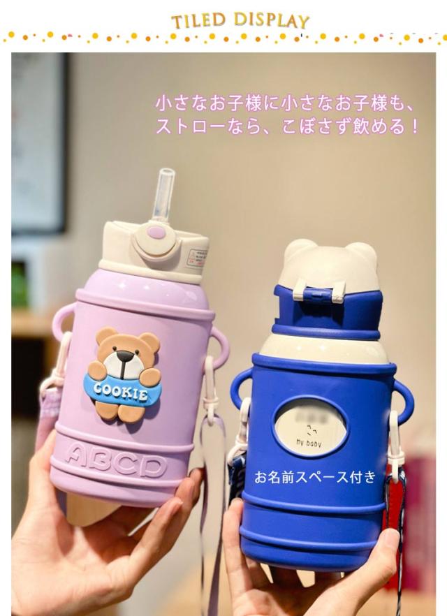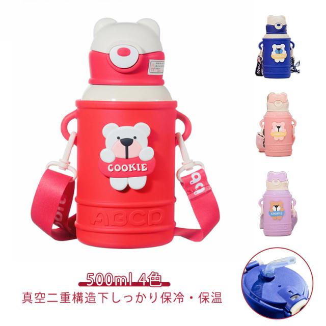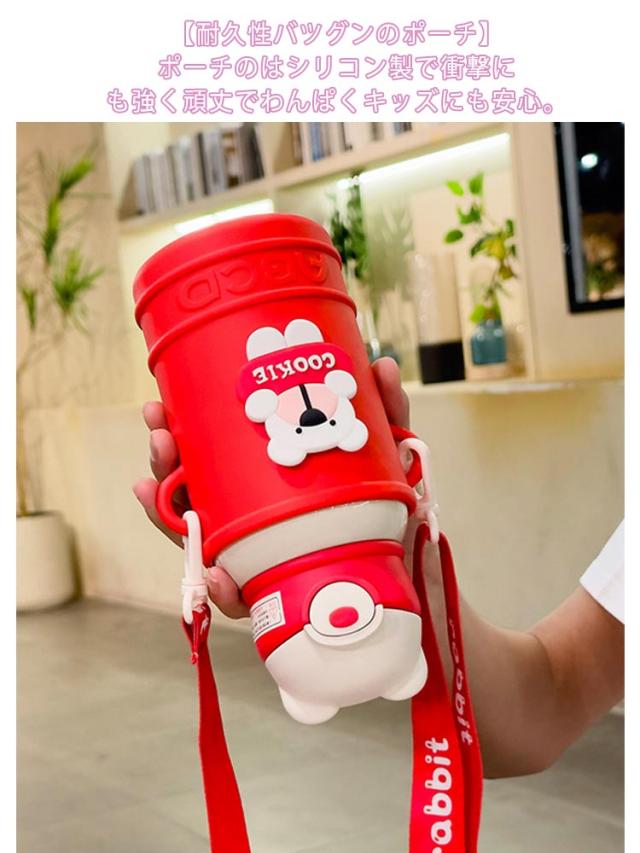 ポーチ付き キッズ 保冷 ストロータイプ 保温 ストロー マグ 魔法瓶 ステンレス ストラップ 子ども マグボトル ワンタッチ ステンレスボトル ストローボトル コンパクト 保育園 幼児 子供 ストロー付き水筒 ベビー 介護 500ml 水筒
