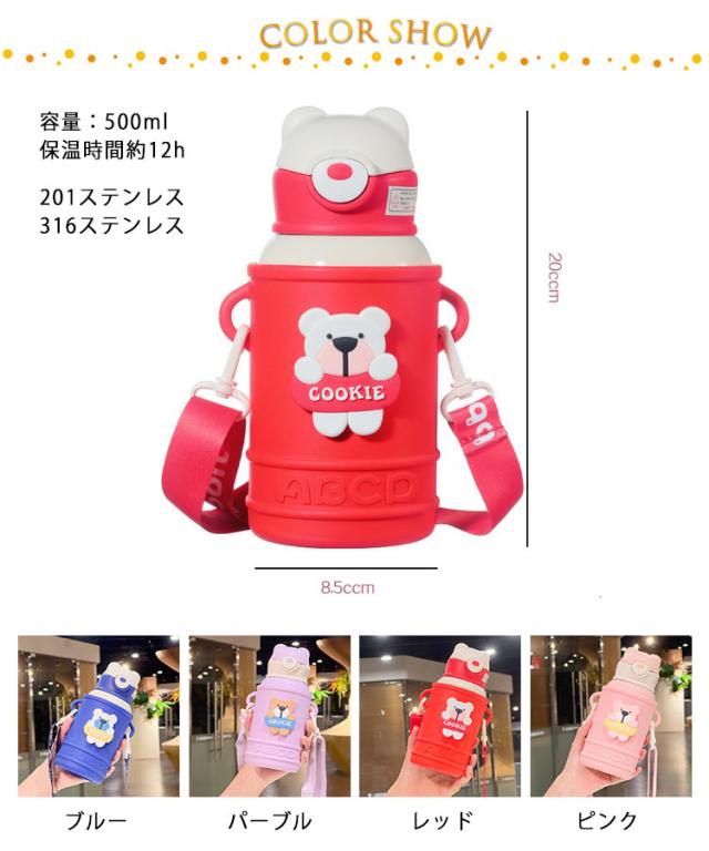 | 500ml 4色 【真空二重構造下しっかり保冷・保温】小さなお子様に小さなお子様も、ストローなら、こぼさず飲める! 【耐久性バツグンのポーチ】ポーチのはシリコン製で衝撃にも強く頑丈でわんぱくキッズにも安心。 【ショルダーベルト付き】 【立体感あるかわいいイラスト】イラストはプリントではなく、アップリケの様に立体的な高級感があり可愛さUP。 【お名前スペース付き】 | |