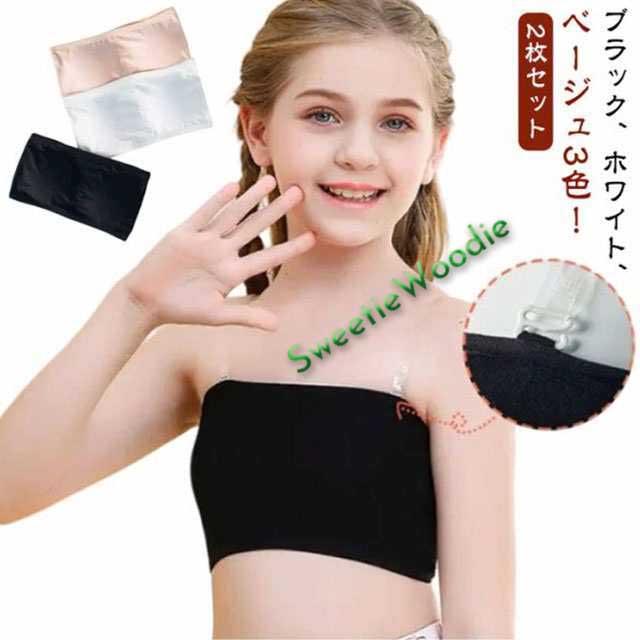 | 【ブラック、ホワイト、ベージュ3色!】【2枚セット】 柔らかく着心地の良いストレッチ性のある生地。 シンプルな子供向けチューブトップブラです。 伸縮性抜群なので締め付け感もなくノンストレスな着心地で体にフィット! パットを取り外してお洗濯すると型崩れも防げます。 透明ストラップ付き、ヒップホップダンスの衣装やレッスン着におすすめ。 | |