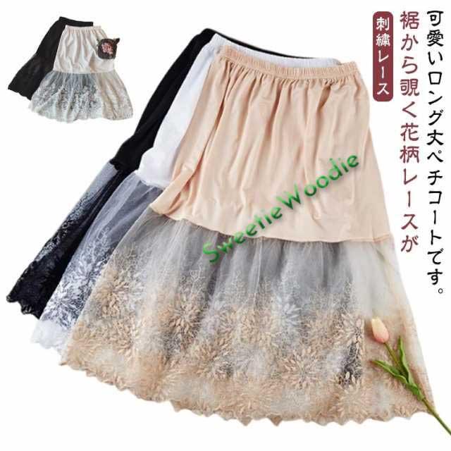 膝下丈 刺繍 レース ペチコート ペチコート ミモレ丈 スカート インナー チュール 裾ふんわり レディース ロングスカート ペチコート ウエストゴム ドレスインナー チラ見せ 下着 フェミニン オシャレ 大人可愛い