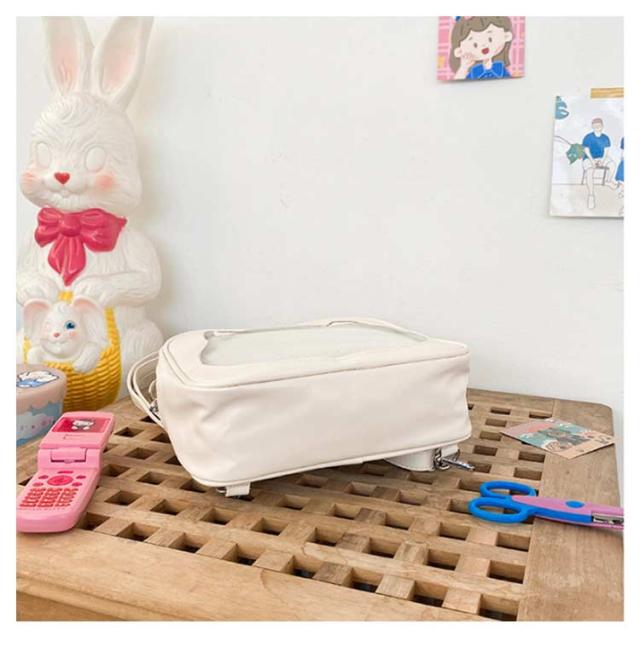 3WAY 猫型 痛バ ショルダーバック フェイクレザー ネコ かわいい 透明窓 小さめ クリアバッグ 斜め掛け オタクバッグ ショルダー 痛バッグ 肩掛け 見せバッグ コンパクト 缶バッジ 推し活 ライブ イベント用 おしゃれ 女子 レディース リュック