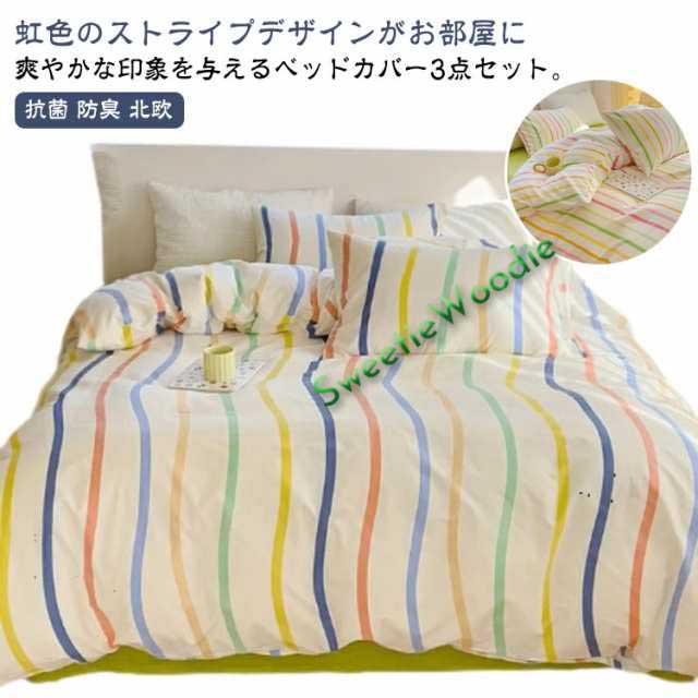 布団カバーセット 丸洗い 寝具カバーセット ストライプ 綿100% 洋式 布団カバーセット 韓国 おしゃれ 防ダニ フラットシーツ 枕カバー 虹色 カラフル かわいい 抗菌 防臭 3点セット 清潔 北欧 掛け布団カバー オールシーズン 学生 女子 女の子 寝室 寝具 女性 シンプル