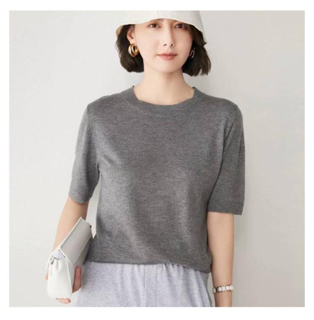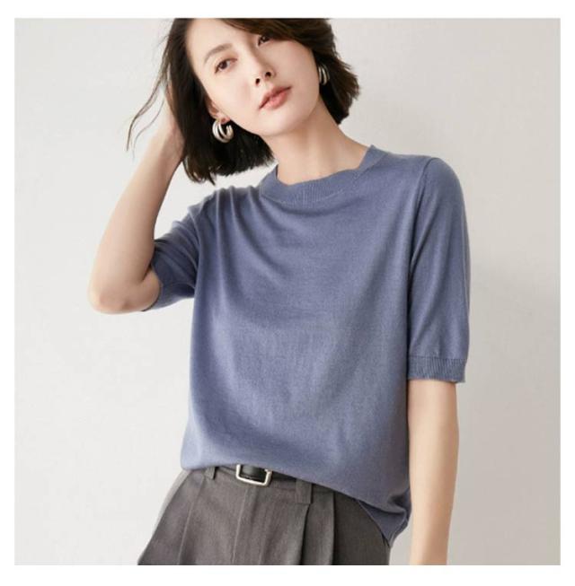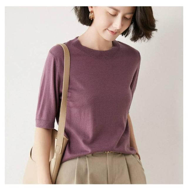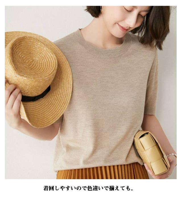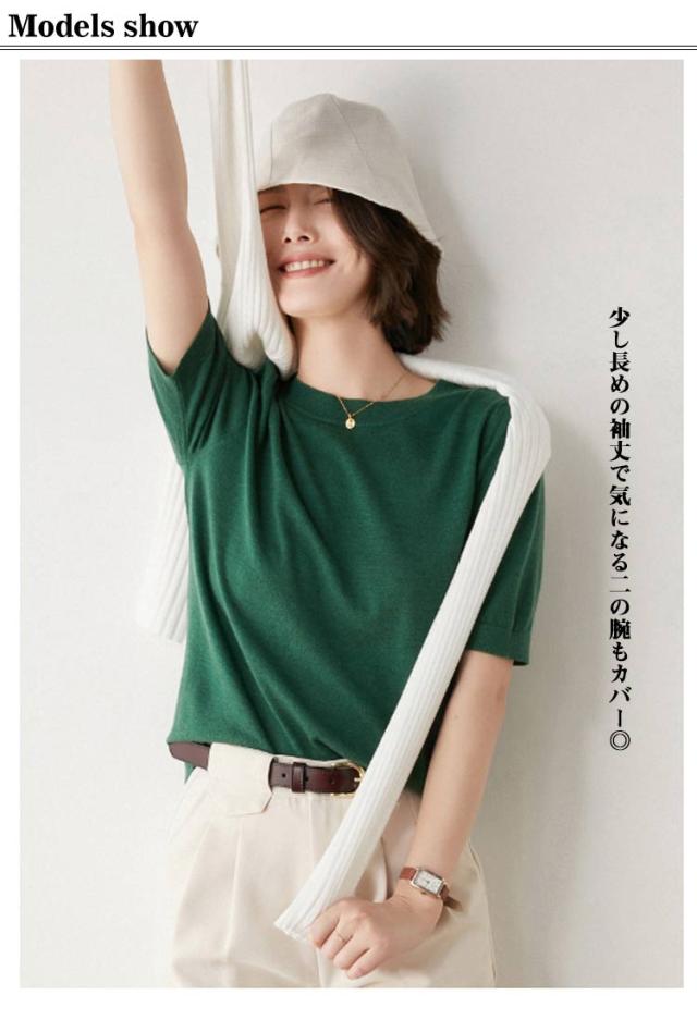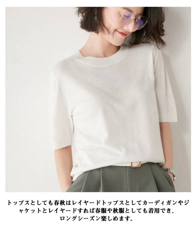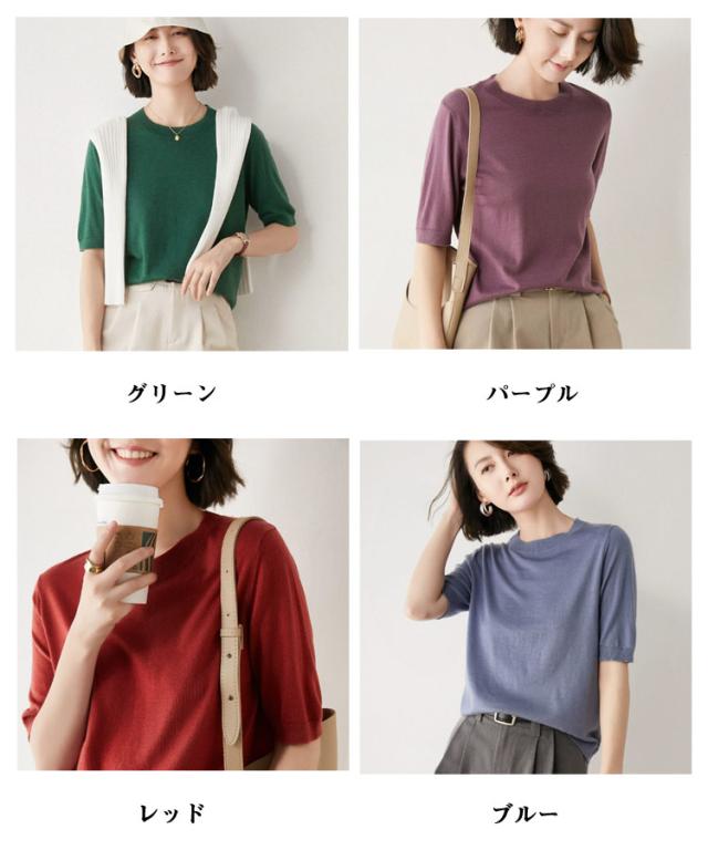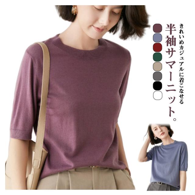 トップス レディース プルオーバー サマーニット クルーネック カジュアル 冷房対策 無地 ニット 半袖ニット ゆったり 五分袖 ニットトップス 薄手ニット ウォッシャブル 日焼け 春夏 秋 ニット 大人 シンプル オフィス