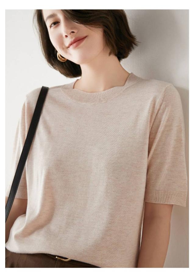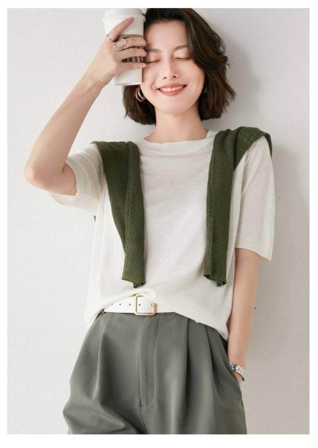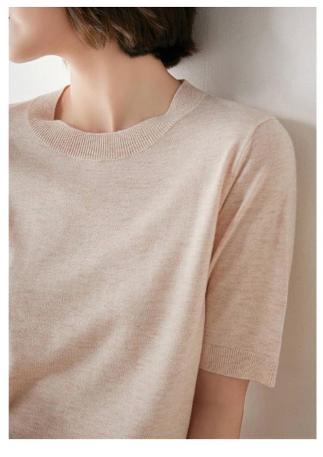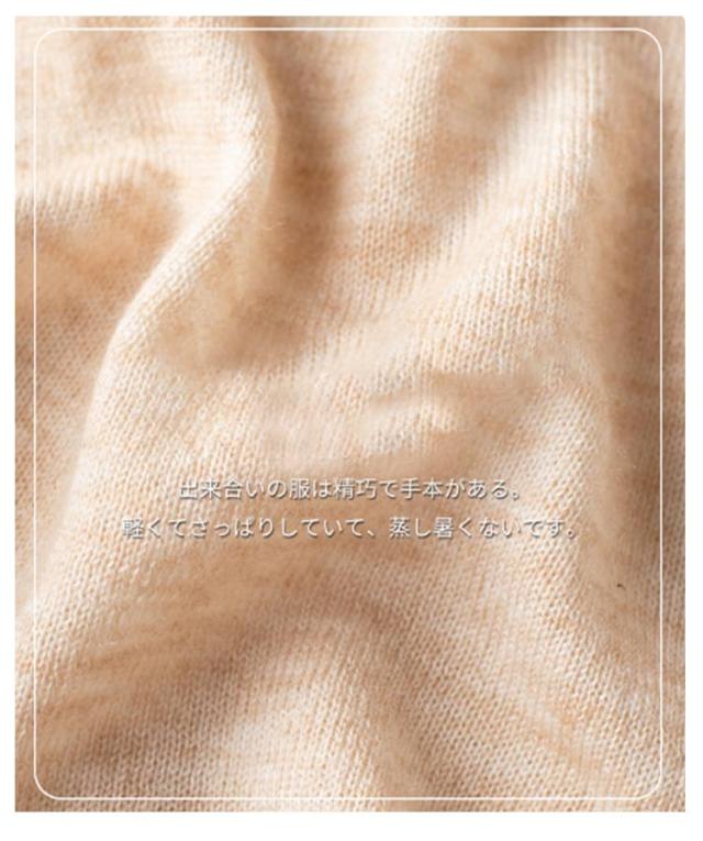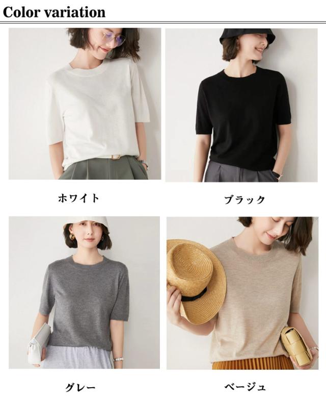 | きれいめカジュアルに着こなせる半袖サマーニット。 少し長めの袖丈で気になる二の腕もカバー◎ 薄すぎず厚すぎないコットン配合の生地でサラッとした着心地。 オフィスカジュアルにも使いやすいシンプルデザイン 着回しやすいので色違いで揃えても。 トップスとしても春秋はレイヤードトップスとしてカーディガンやジャケットとレイヤードすれば春服や秋服としても着用でき、ロングシーズン楽しめます。 | |