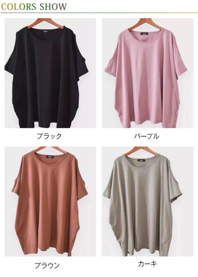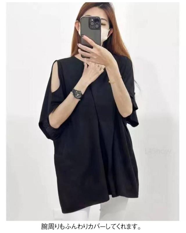 ゆったり ゆったり トップス オフショルダー 送料無料 夏新作 オフショルダーTシャツ 半袖 ドルマン tシャツ ラウンドネック 肩出し ロングt ビッグシルエット 体型カバー