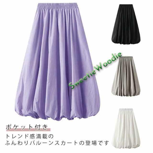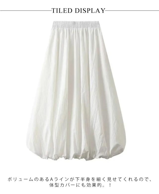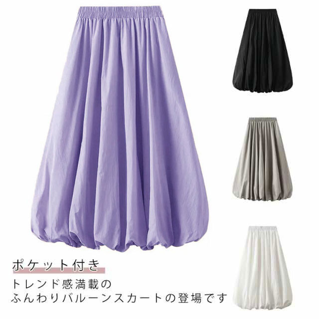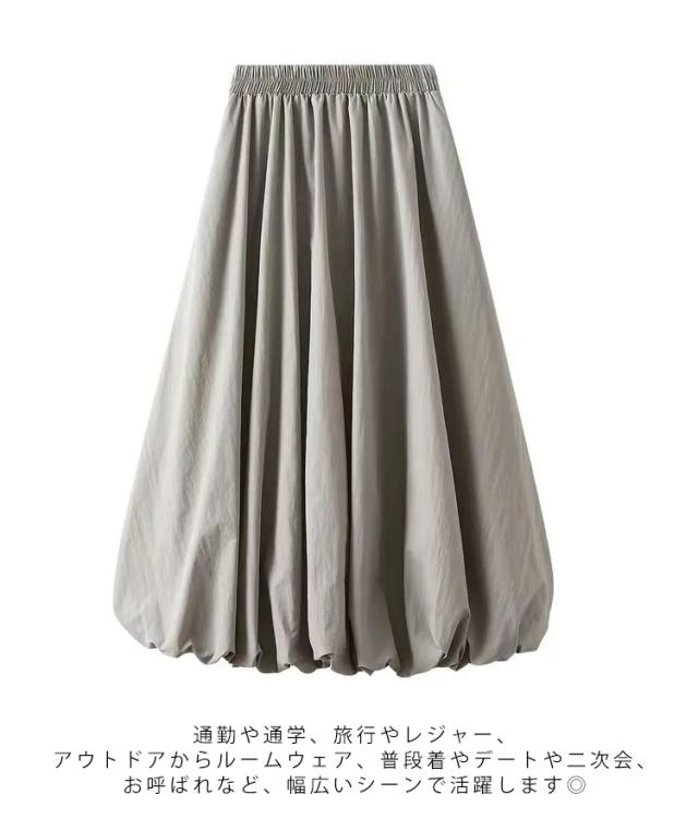 レディース カジュアル バルーン ゆったり レディース ロングスカート 体型カバー ボトムス ハイウエスト ウエストゴム バルーンスカート 大きいサイズ お洒落 着痩せ 二次会 女子会 普段着 通学 春 夏 秋 無地