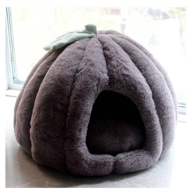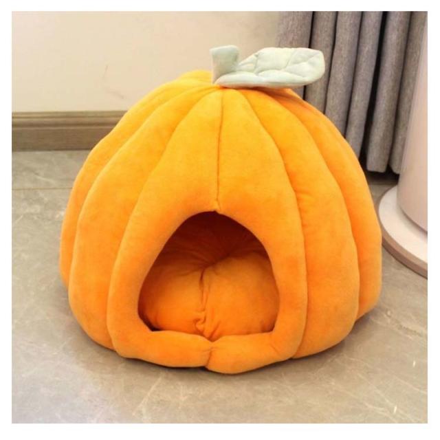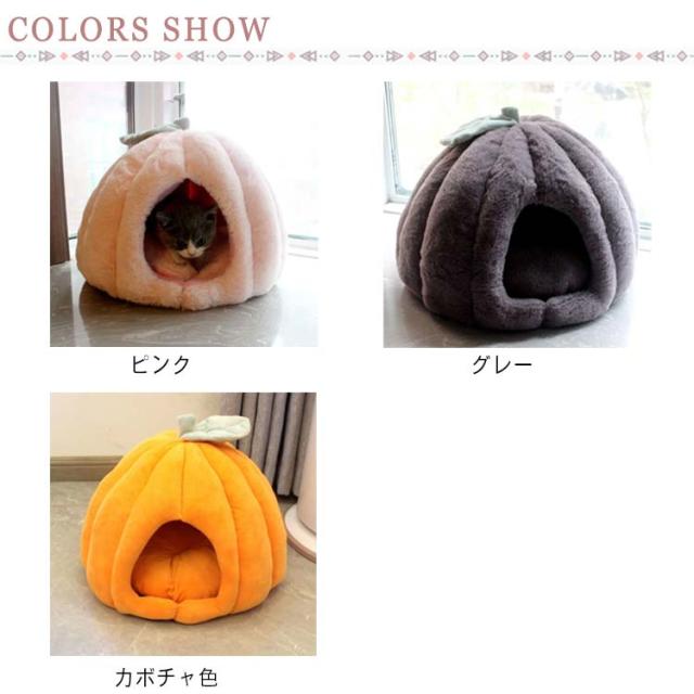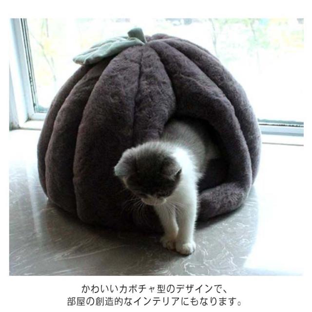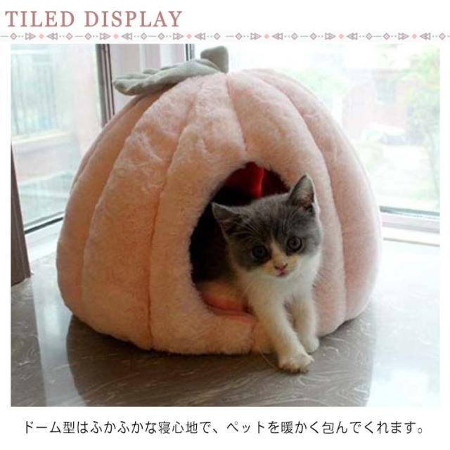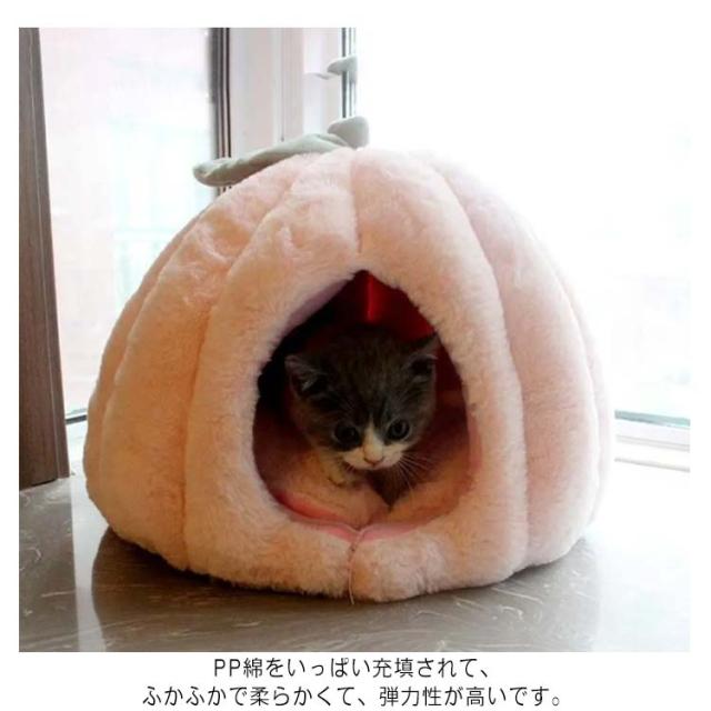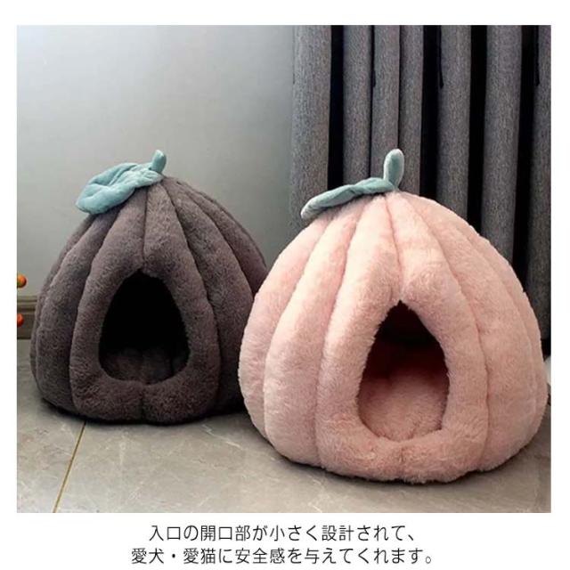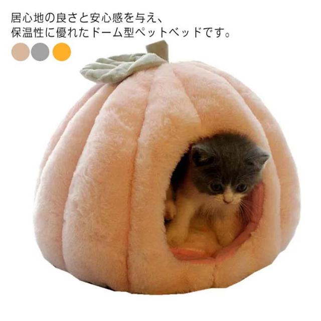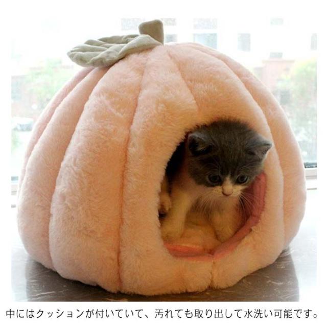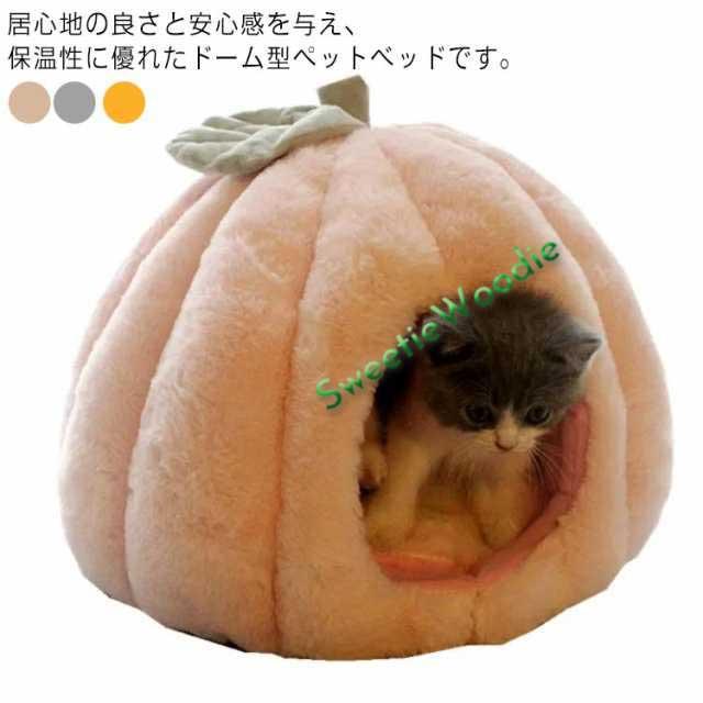 猫 ベッド 小型犬 ペットベッド カボチャ型 ハウス Mサイズ 猫ハウス ドーム型 かわいい 柔らかい 暖かい ふわふわ もこもこ 滑り止め クッションマット付き 洗える おしゃれ ネコ 猫用 保温防寒 通年