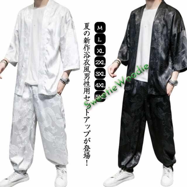 | 夏の新作浴衣風男性用セットアップが登場! 軽い着心地で春夏秋にちょうど良く。 1枚でもレイヤードしても快適に楽しめ、夏でも、クーラーの効きすぎた部屋での温度調節の羽織としてもOK。 肌にやさしくて、吸汗性も優れており、爽やかな着心地を実現。 トレンドの龍柄で個性的で独特なセンス感が出て、お洒落な雰囲気もかけ持つ。 父の日、敬老の日のプレゼントとしてもおススメです。 | |