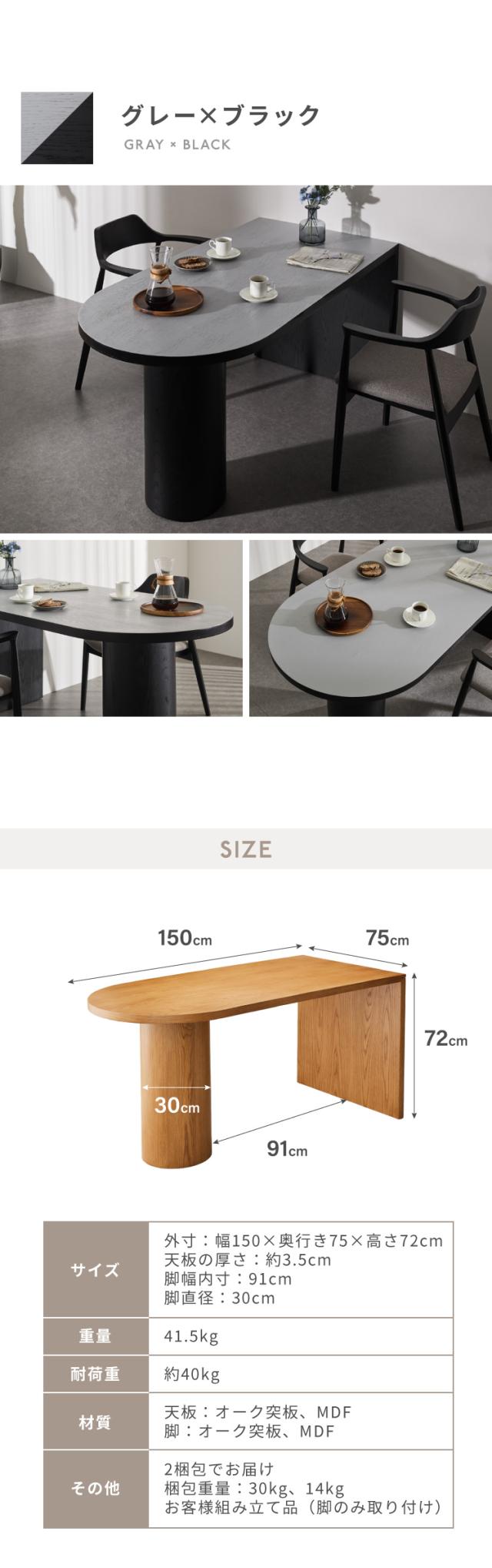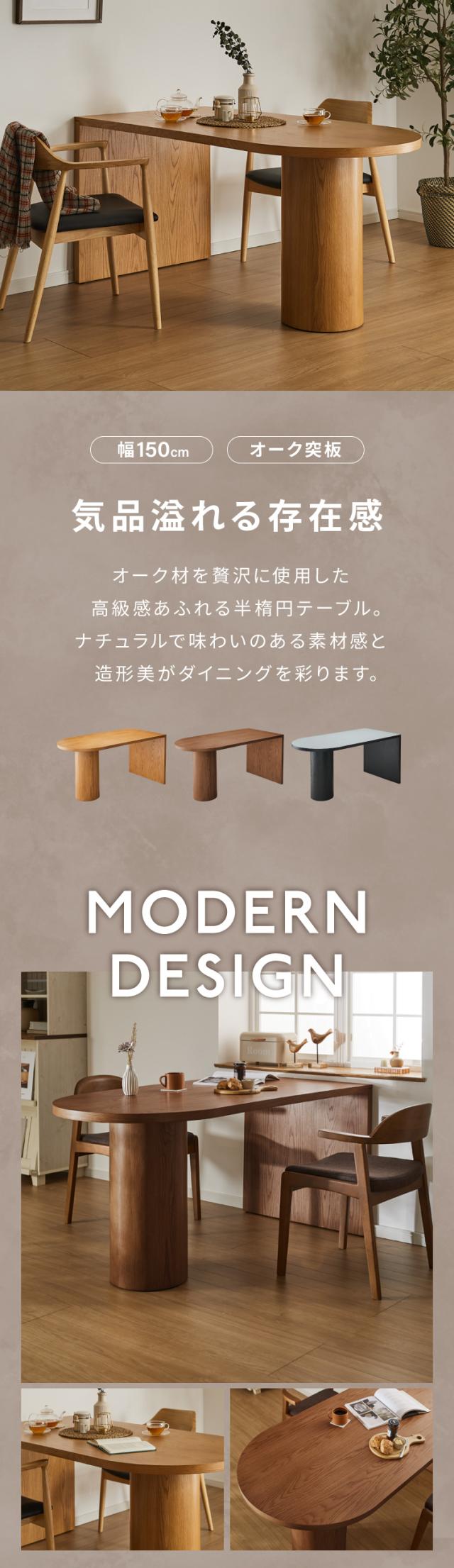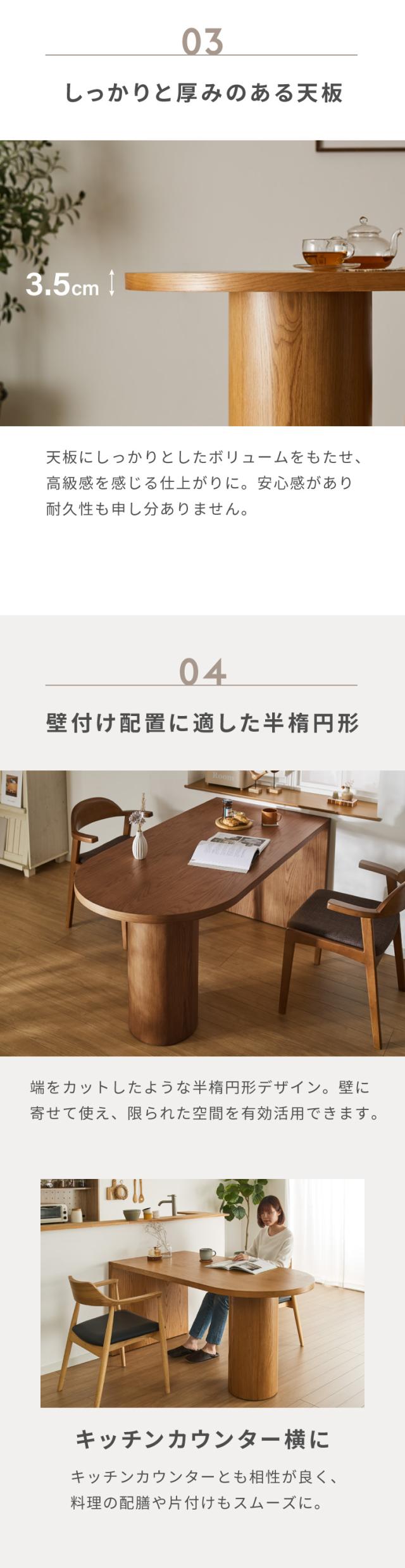 半円 ダイニングテーブル 150 テーブル 単品 4人掛け 壁付け可能 楕円テーブル 楕円 ダイニング テーブルのみ 脚 壁付け 壁付 カフェ デザイナーズ 4人 4人用 北欧 おしゃれ 木 木製 木目(代引不可)【送料無料】