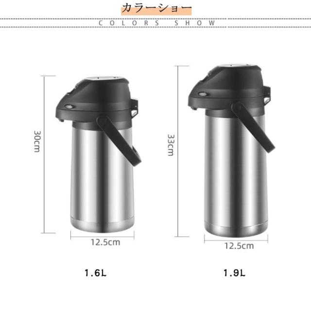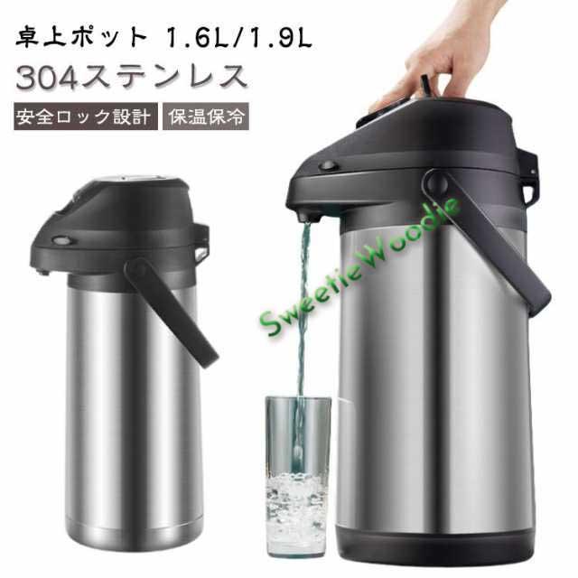 卓上ポット 魔法瓶 保温ポット 1.9L 押す エアーポット 大容量 1.6L 1.9L 押すだけポット 保温 保冷 まほうびん 熱湯 広口 ステンレスポット 304ステンレス 安全ロック設計 火傷防止設計 手持ち付き 冷めない 持ち運び便利 卓上 片手操作