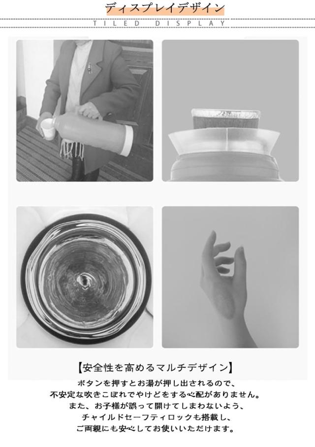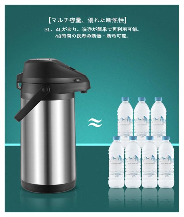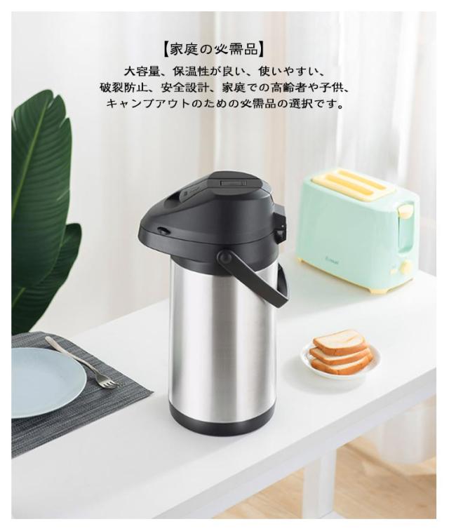 | 卓上ポット 1.6L/1.9L 304ステンレス 安全ロック設計 保温保冷 広口タイプなので、使いやすくお手入れも簡単なステンレスエアーポット。 【安全性を高めるマルチデザイン】ボタンを押すとお湯が押し出されるので、不安定な吹きこぼれでやけどをする心配がありません。 また、お子様が誤って開けてしまわないよう、チャイルドセーフティロックも搭載し、ご両親にも安心してお使いいただけます。 また、マルチセーフティ設計により、お年寄りからお子様まで安心してお使いいただけます。 【ステンレス鋼】ステンレス製なので、よい材料、高力、高温抵抗、耐食性、錆つくこと容易でない安定した性能。 お子様がいるご家庭やキャンプに出かける際にも必需品です。 【マルチ容量、優れた断熱性】1.6L、1.9Lがあり、洗浄が簡単で再利用可能、48時間の長寿命断熱・断冷可能。 【家庭の必需品】大容量、保温性が良い、使いやすい、破裂防止、安全設計、家庭での高齢者や子供、キャンプアウトのための必需品の選択です。 | |